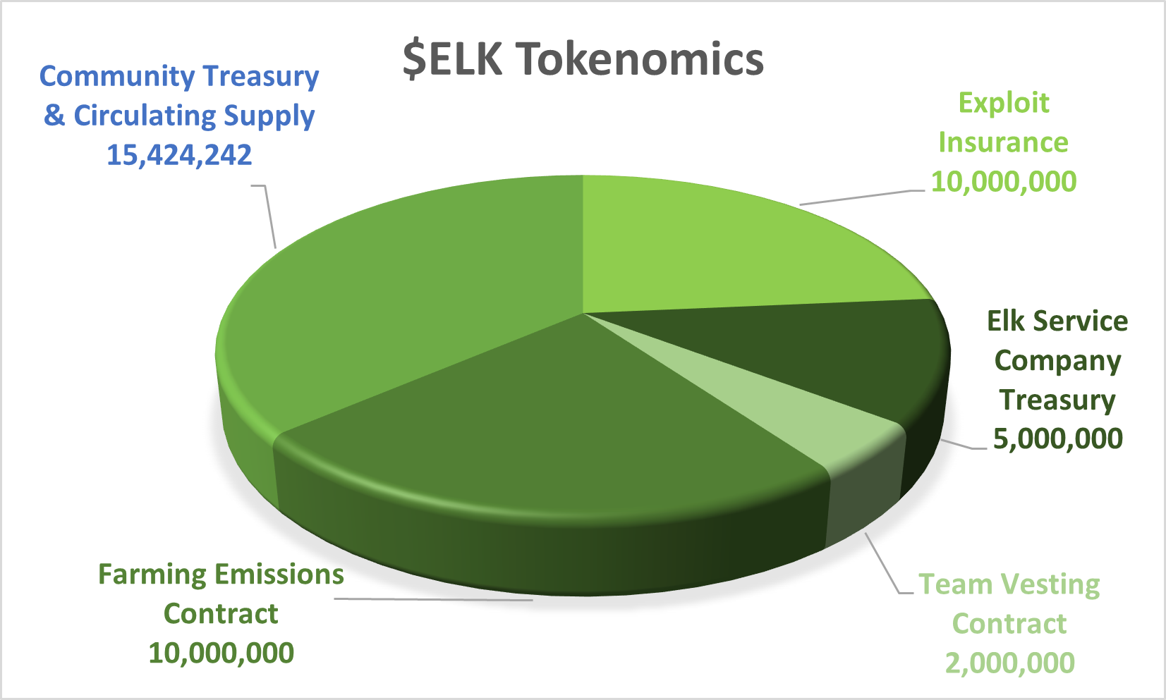 <figure><img src="https://653879926-files.gitbook.io/~/files/v0/b/gitbook-x-prod.appspot.com/o/spaces%2FMI8zWnXu9eyqfz97rj0K%2Fuploads%2Fgit-blob-3ae8e06f49b67750230daa5951aa7e7ed3bceea2%2FElkTokenomics2023.png?alt=media" alt=""><figcaption><p>ELK Tokenomics</p></figcaption></figure>